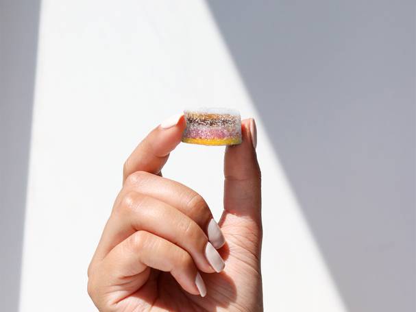 Já quando a gente vem para área de suplementos, tem a Nutrited, que criou gomas de mascar de suplementos cuidadosamente escolhidos para aliviar os sintomas da menopausa. Essas gomas são impressas em 3D e vendidas sob encomendas ou por assinatura.